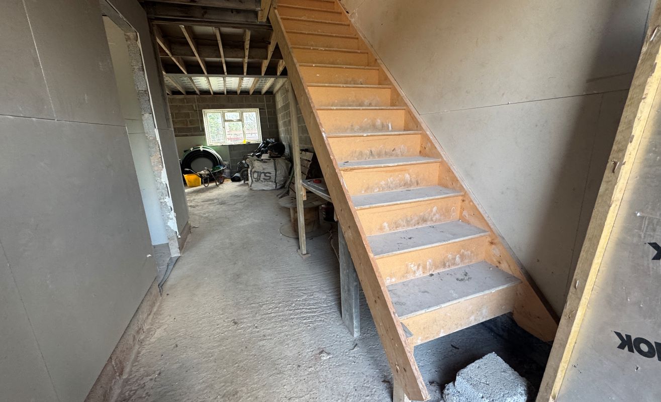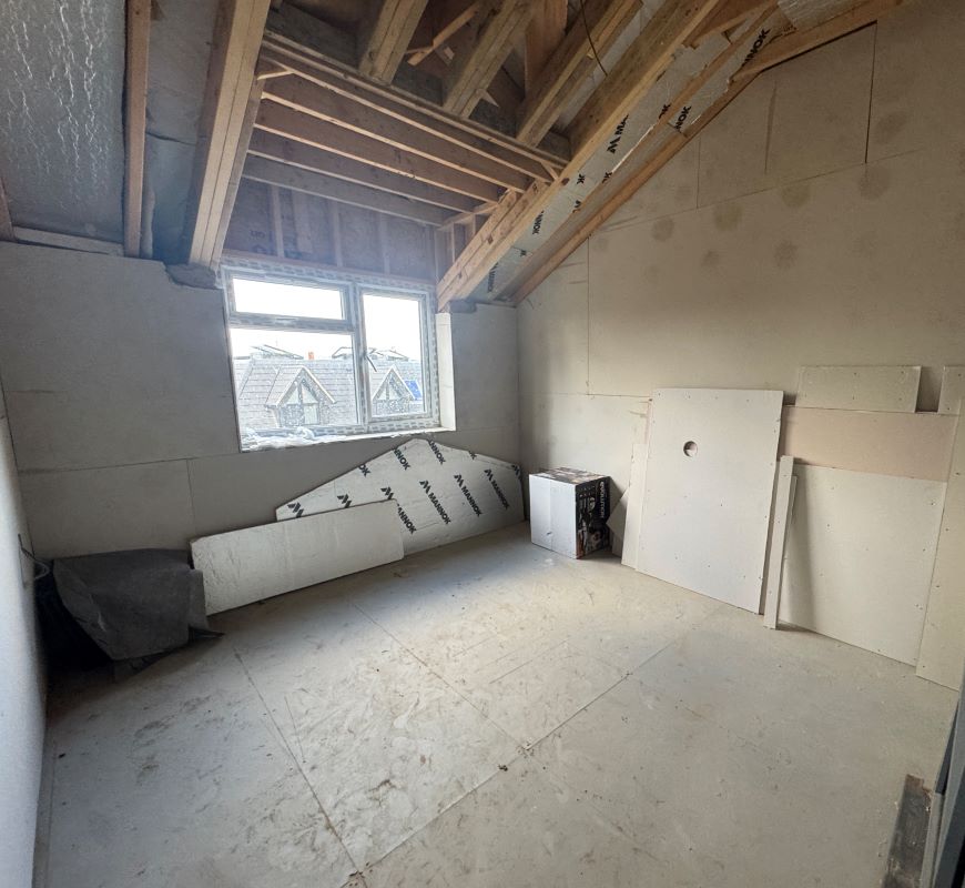 A partially constructed detached new-build property of approximately 1,288 sqft with 3 bedrooms and double glazing. The development has reached first-fix stage, however, works remain incomplete and the property requires finishing.