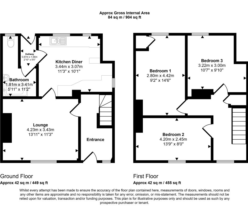 Ground Floor: Entrance hallway, lounge, kitchen/diner, lobby to bathroom.