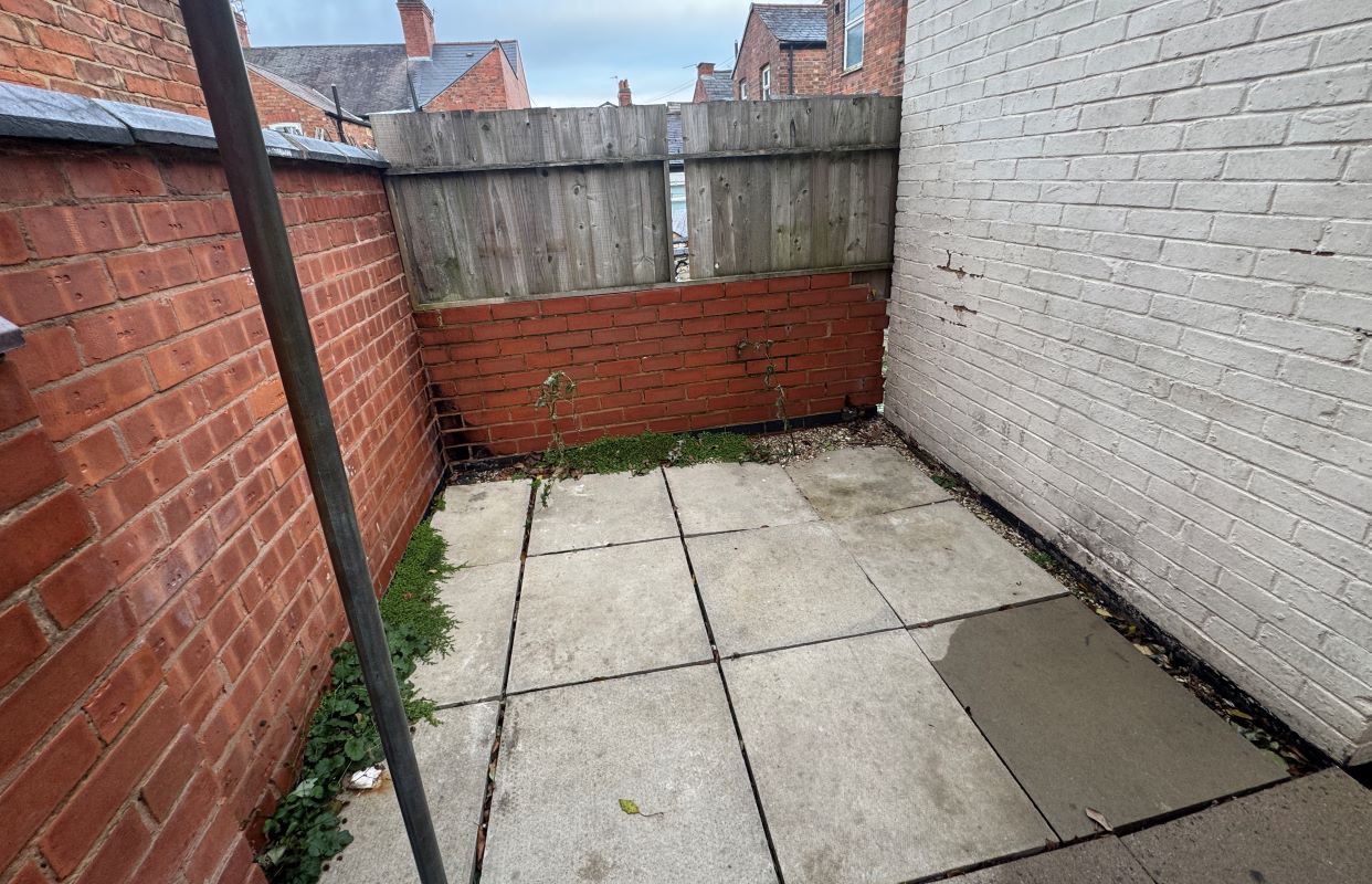 Outside: Walled front garden, rear garden with rear access.