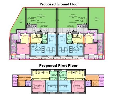 A former car park of approximately 0.09 acres (427 sqyds) with planning permission for 2x2 storey semi detached dwellings each with an internal floor area of 1,044 sqft (97 sqm). Proposed Accommodation - for each unit: Ground Floor: Entrance hall, open plan living, dining and kitchen area, study, WC. First Floor: 2 bedrooms, bathroom, study, store, plant room. Outside: Rear garden.